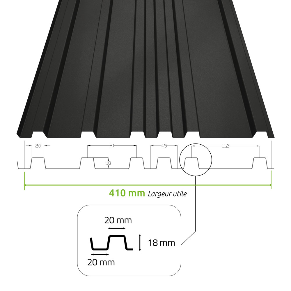 Bardage Métallique Tasseau Aléatoire Noir Mat